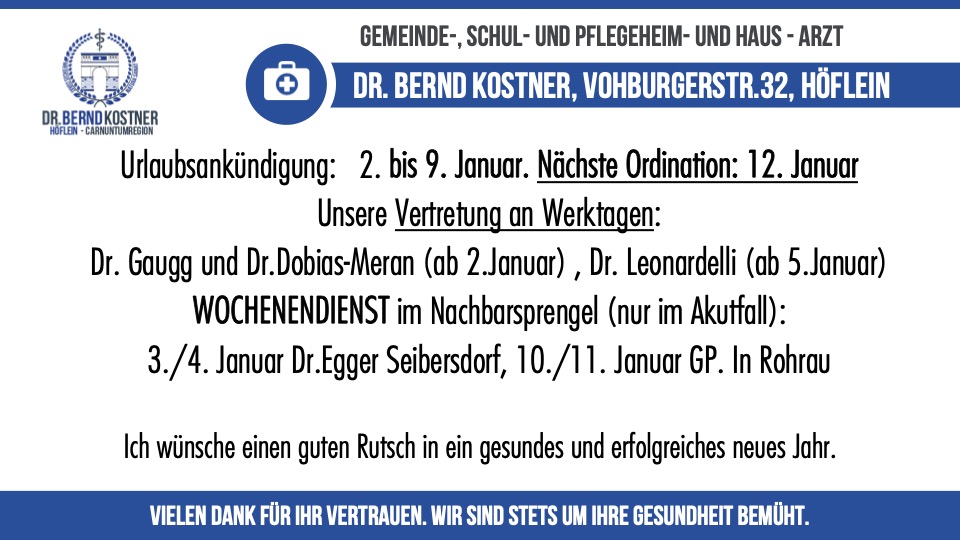 Startseite » MED INFO » Urlaub vom 2.-9. Januar